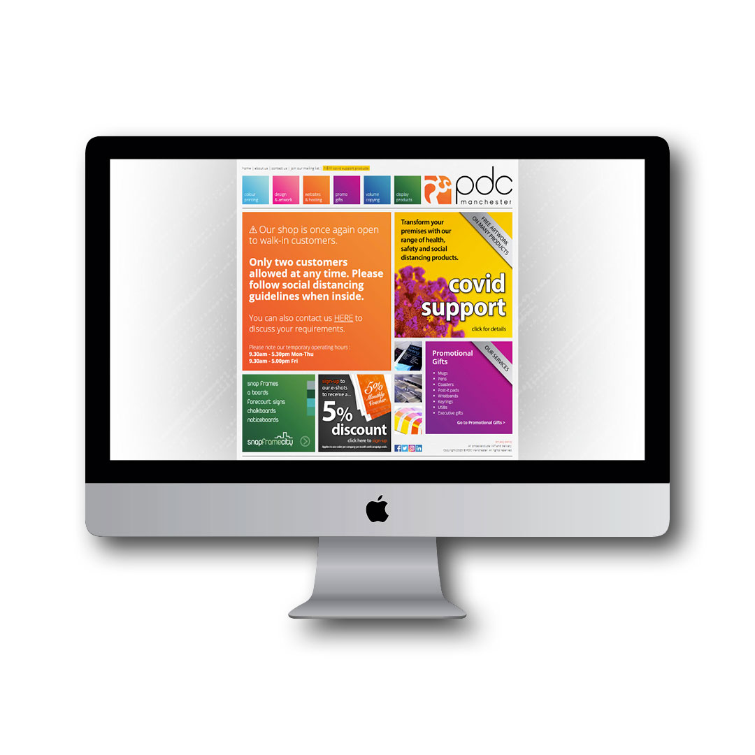 After the re-brand, I built a new website for PDC; designed to be bright, colourful and appealing. It's my job to update and maintain the website as well as handling e-shots and social media posts.