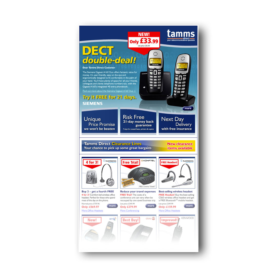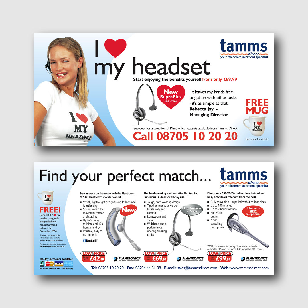 I worked on a wide variety of marketing materials for Tamms Direct between 2003 and 2007, including catalogues, letters, mailers, scratch cards, leaflets, magazine adverts, e-shots and websites.
